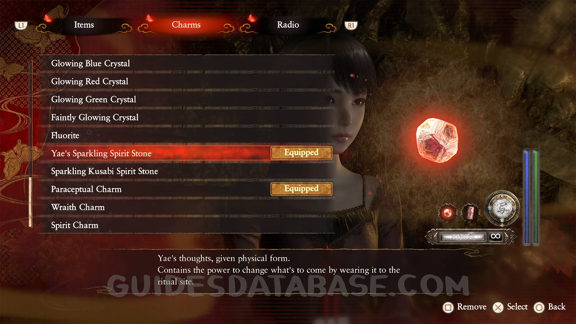 Reach the Crimson Butterfly ending to access the side story Yae Kurosawa, then complete it to obtain Yae's Sparkling Spirit Stone.