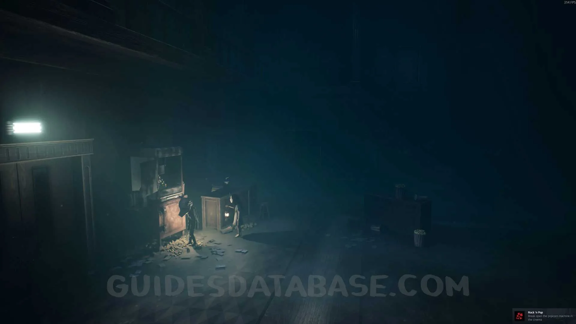 During Chapter 2: The Cleaning House, go into the cinema, pick up the brick next to the door, and throw it at the popcorn machine.
