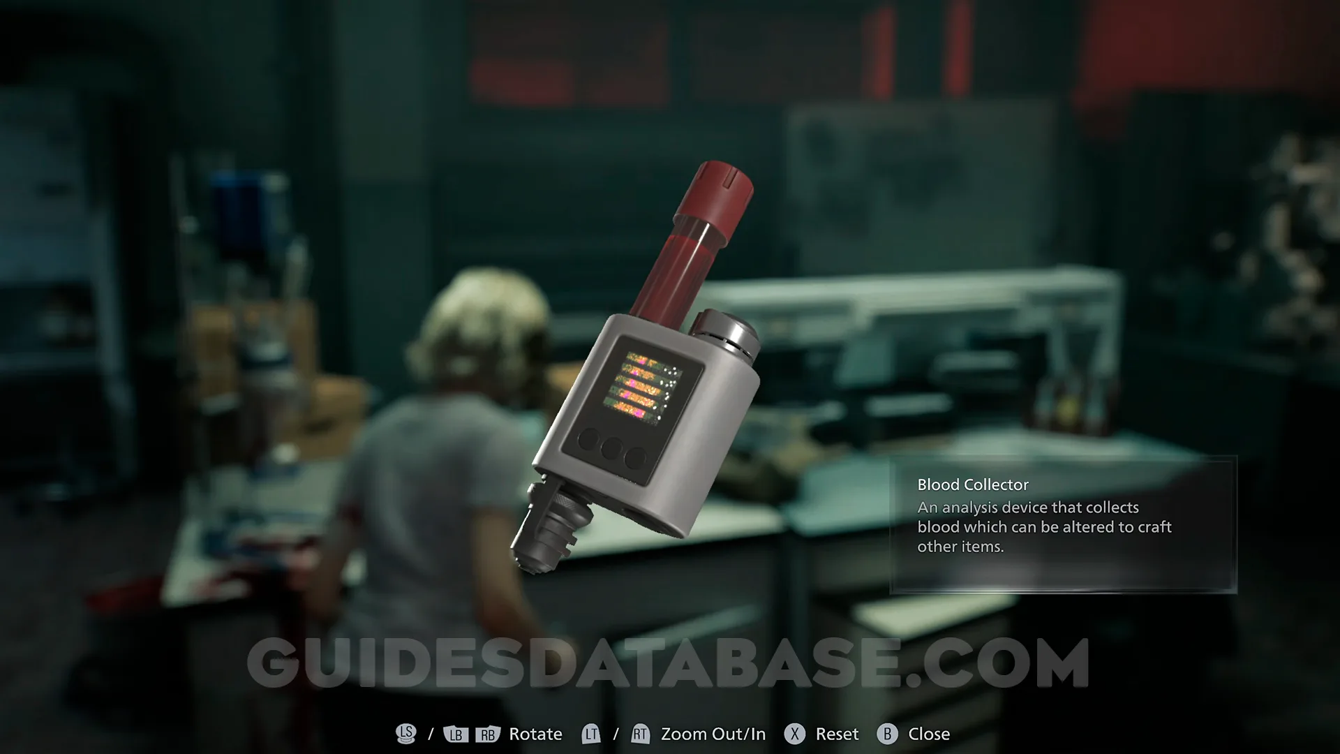 You get the Blood Collector in the Blood Lab at the Care Center, and you can unlock a new recipe by interacting with the Blood Specimen and the Analyzer in the same room. A new option will appear in the menu for crafting items. You obtain the necessary materials in various places throughout the game, simply craft any item to obtain it.