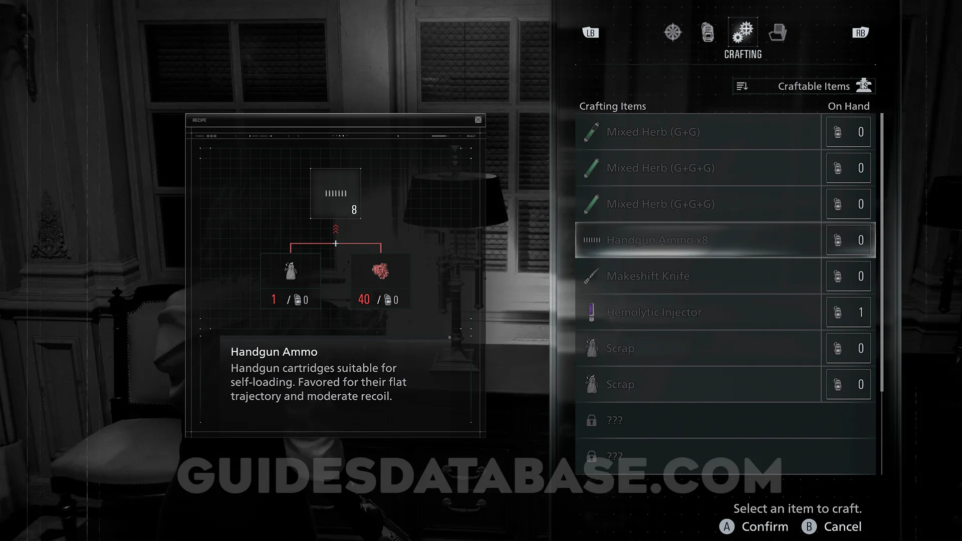 You need to craft at least 1 of each item with Leon. The recipes will be unlocked automatically upon picking up the necessary materials. You will only be able to do this in Raccoon City and onwards.