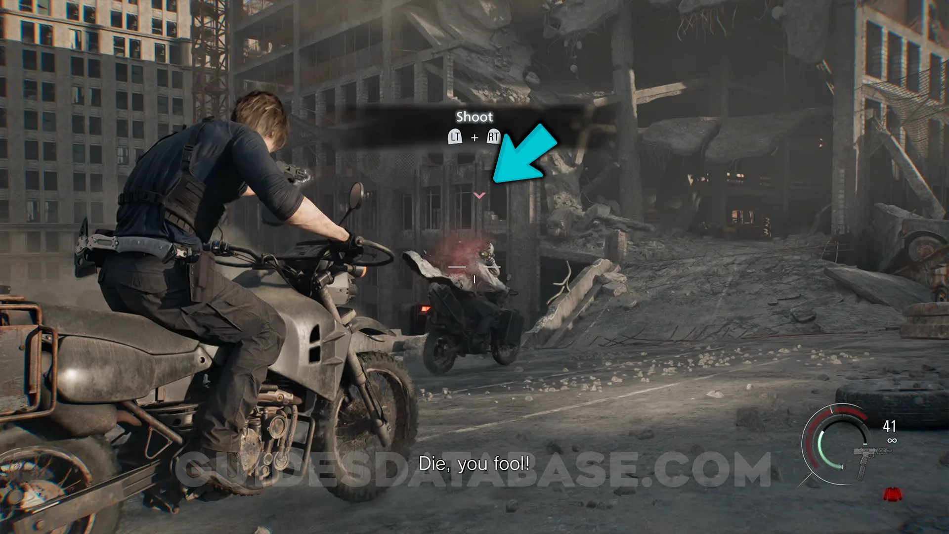 During the part where you ride a Motorcycle, shoot Victor when he is about to fire a missile at you. A red mark will appear above him when he is about to hit you.