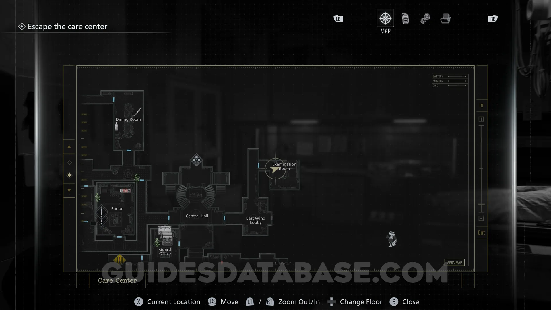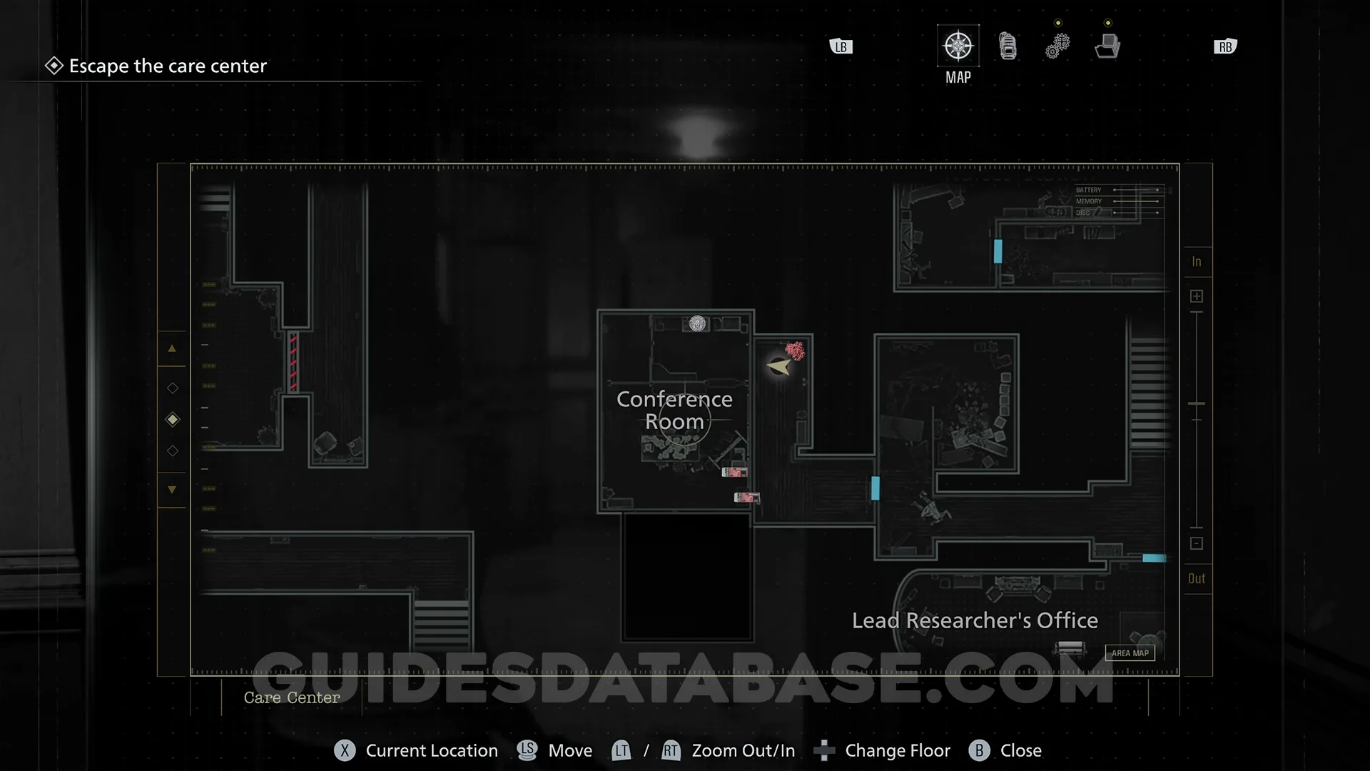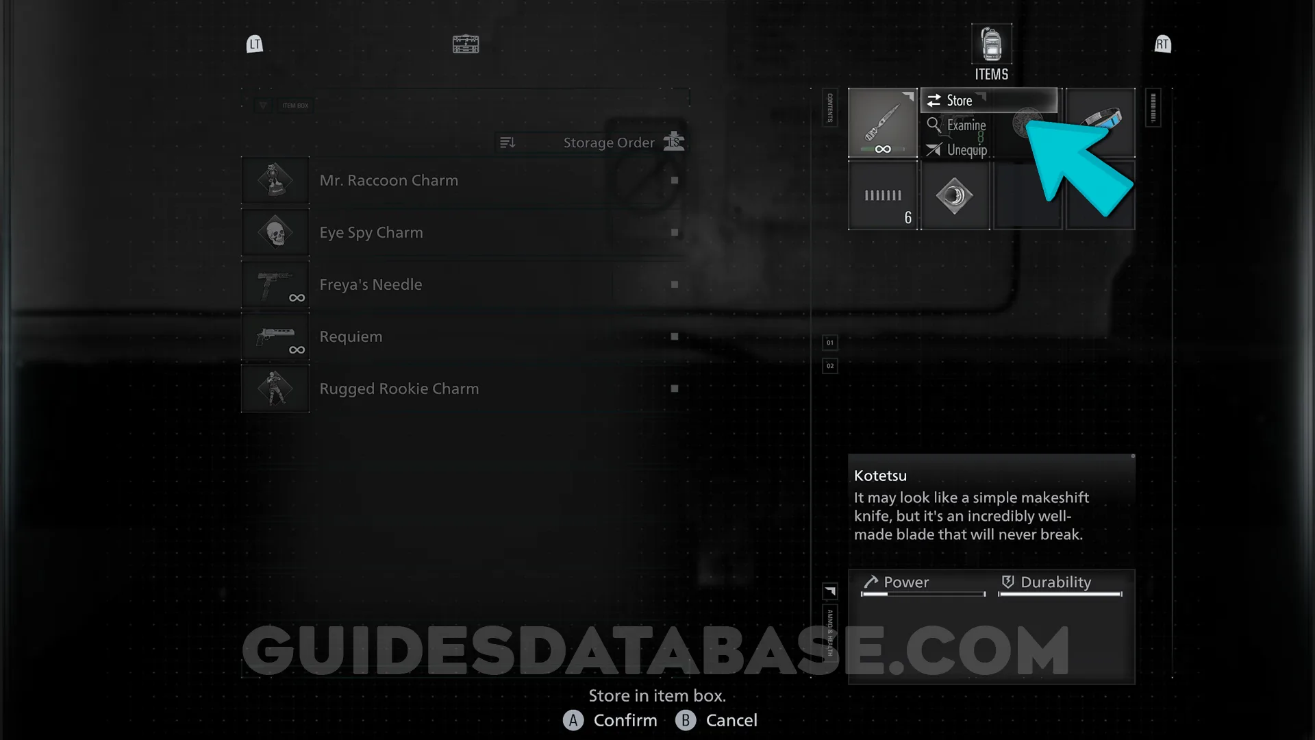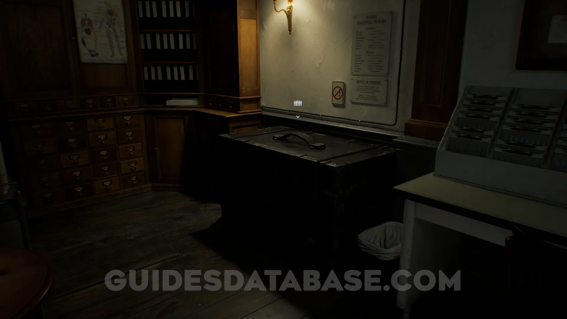 Your first opportunity to get this trophy is in the Care Center. While playing as Grace, go to the Guard Office, open the storage chest, and store any item inside it.