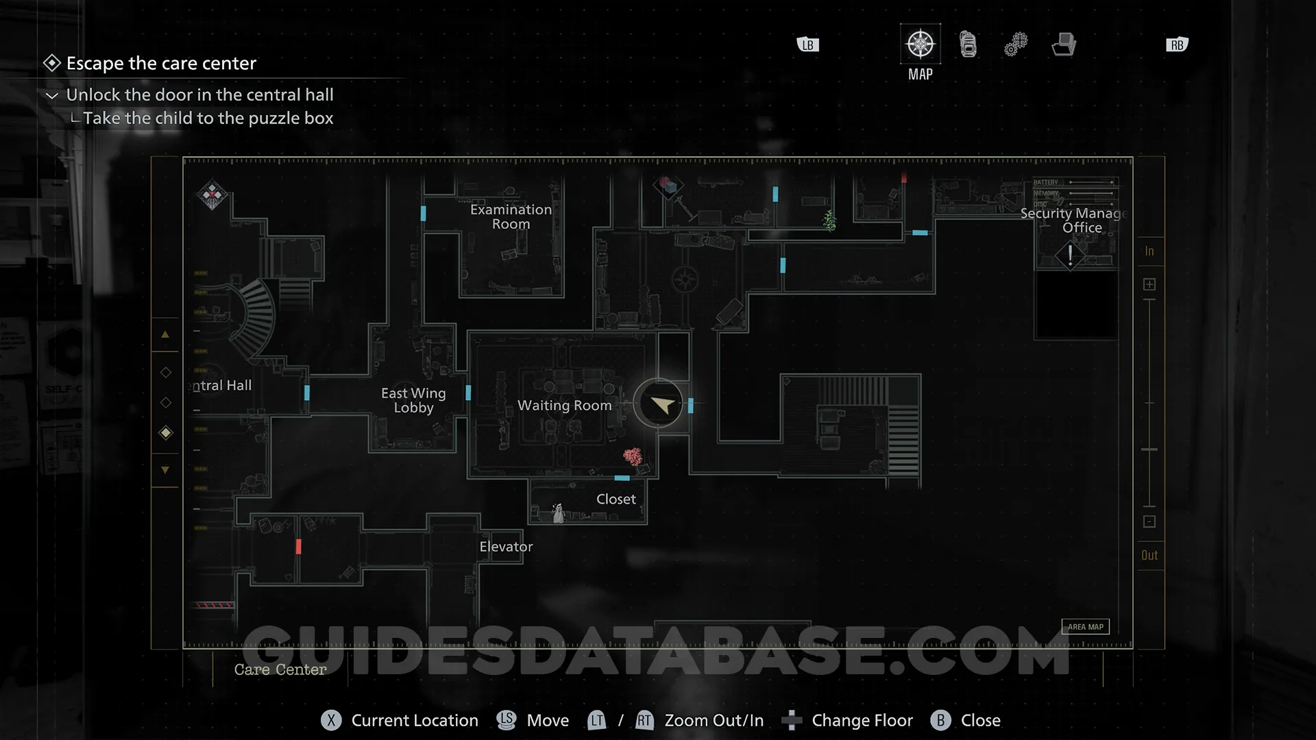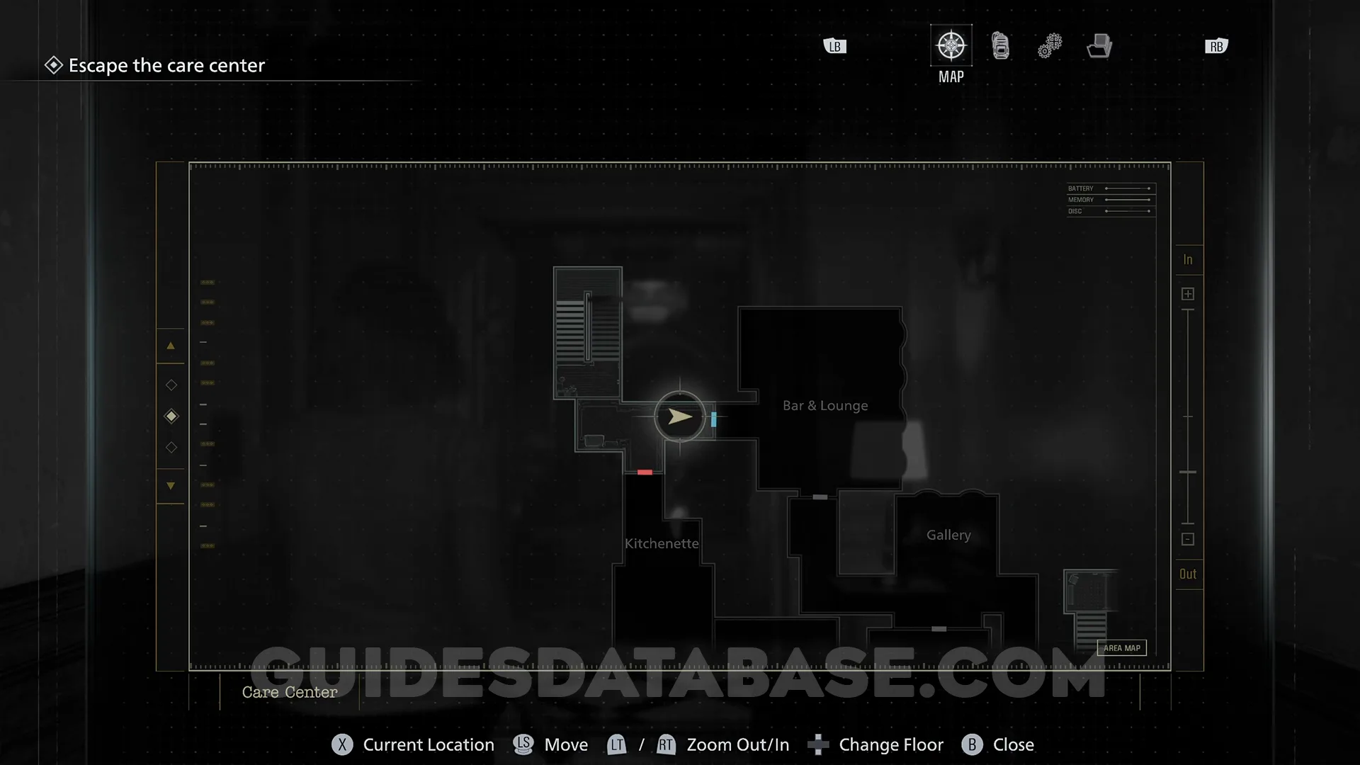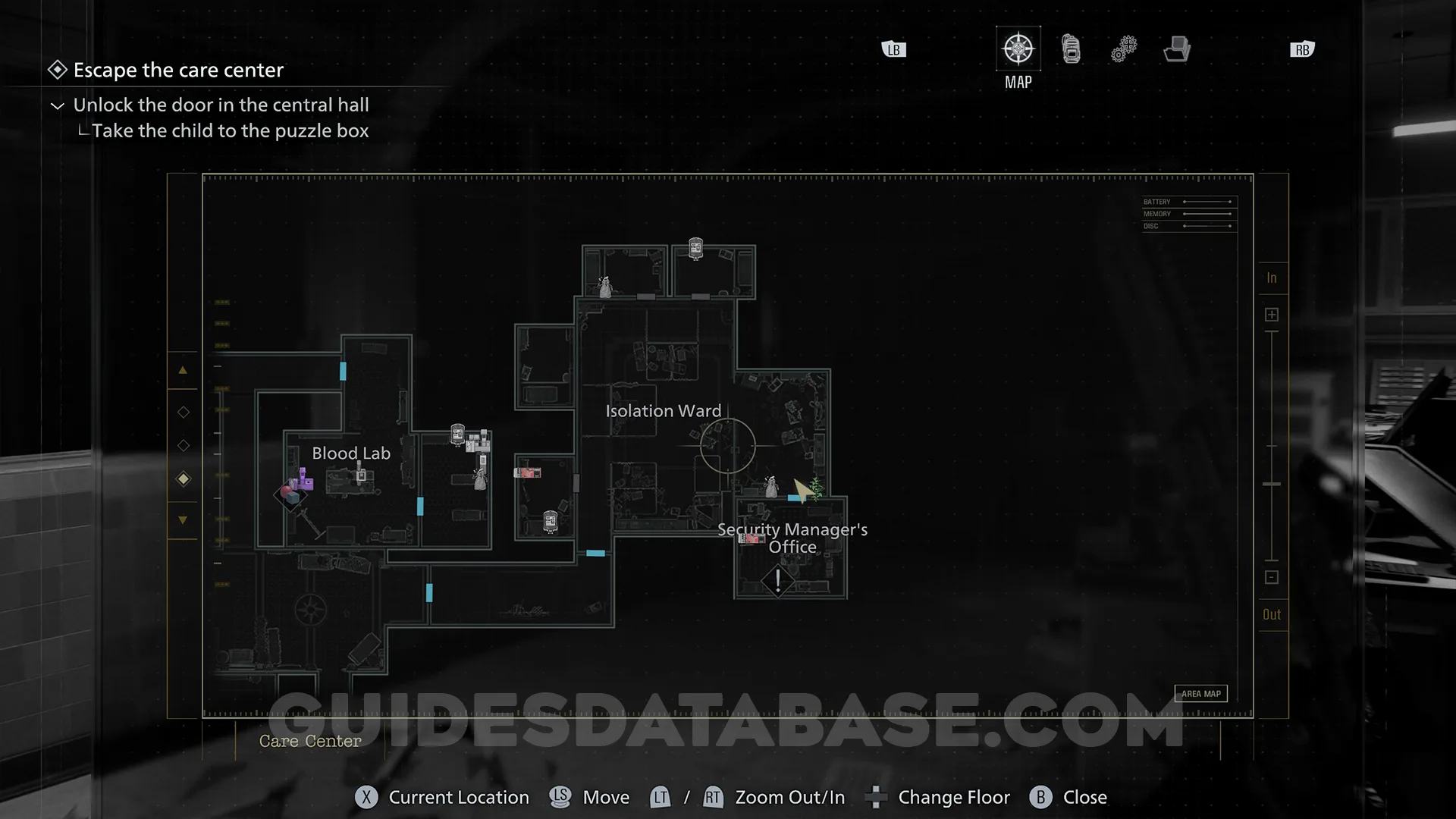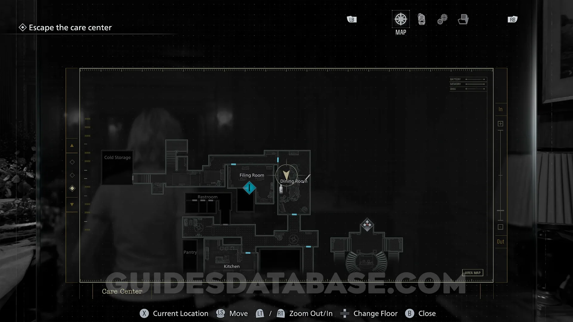 Your first opportunity to get this trophy is in the Care Center. While playing as Grace, go to the Guard Office, open the storage chest, and store any item inside it.